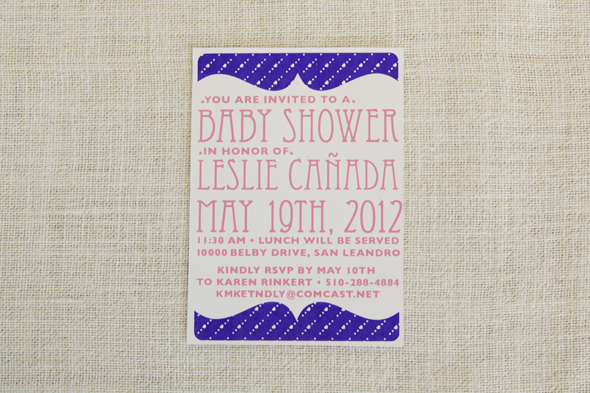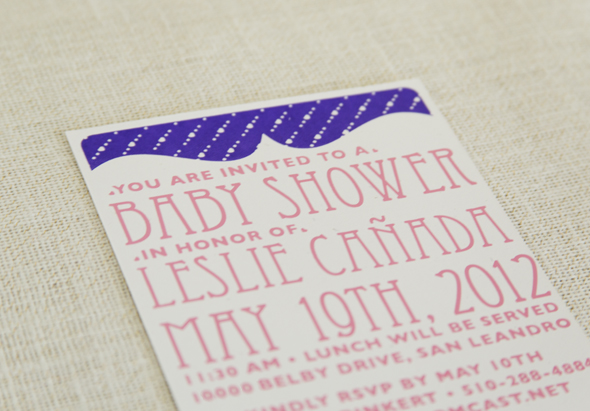 A custom screen printed invitation for a baby shower. I like the cute details to this card with the hearts, sweet without being overly girly. The pink was also the first time I mixed ink myself and the color came out beautifully.