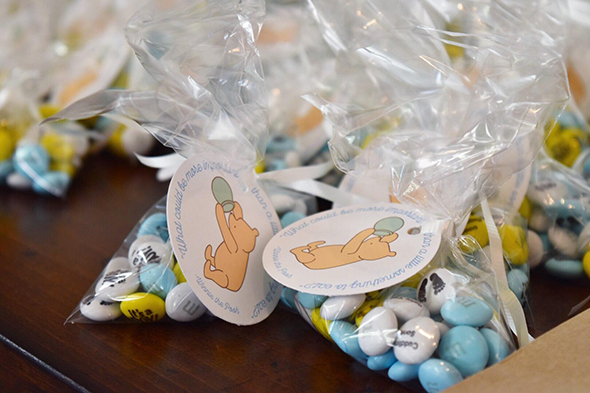 A good friend of mine is due with her first baby, so I was excited to get to throw a baby shower for her and her husband. She requested a classic Winnie the Pooh theme, which was fun to put a unique spin on for this special event. I focused on putting together a lot of little touches throughout the space and it was fun to put all the ideas together.