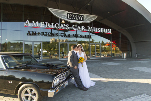 Details: Tacoma, Washington / Ceremony: Point Defiance Rose Garden / Reception: LeMay – America’s Car Museum / Hair: Mandy Johnson / Bridal Gown: David’s Bridal