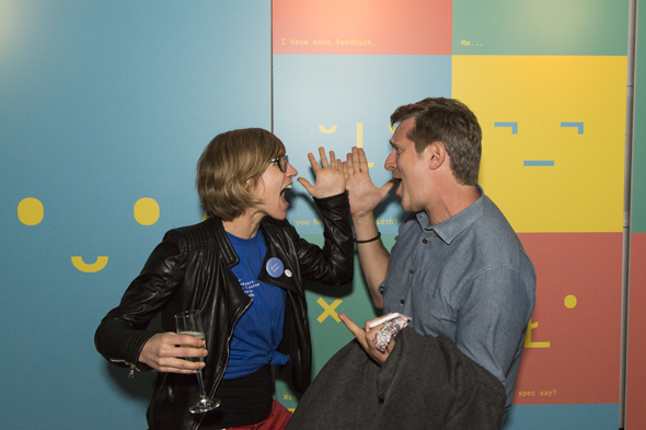 The Google I/O Conference is a great event for developers. Beyond the conference sessions, there are many other events that are more social, serving as meet-and-greet events for conference guests. I was invited to cover the Google UX team’s happy hour event, hosted at 111 Minna Gallery. This is the second year I’ve captured this event and I was excited to go back. Guests were having a great time, connecting and catching up. Bright colors, emoticons and buttons were all part of this year’s theme, giving the event a fun, light-hearted feeling.